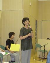 曲目の紹介、楽器紹介を交えて進行役の指揮者(小沢朋子)